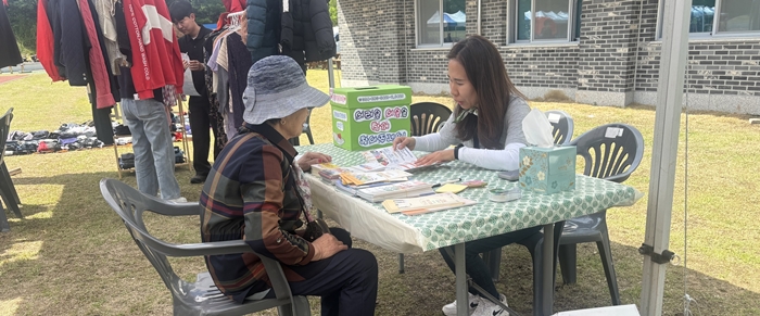 [½Ã»çÄÚ¸®¾ÆÀú³Î=±è¿¬ÇÐ ±âÀÚ] ¿µ¾çÀ¾ÇàÁ¤º¹Áö¼¾ÅÍ(À¾Àå ±èŰâ)´Â 27ÀÏ ¿µ¾çÀ¾¹Î ÇѸ¶À½ üÀ°´ëȸ°¡ °³ÃֵǴ ¿µ¾ç°ø¼³¿îµ¿Àå¿¡¼ º¹Áö»ç°¢Áö´ë ¹ß±¼ ¹× Áö¿øÀ» À§ÇÑ È«º¸ Çà»ç¸¦ °¡Á³´Ù.