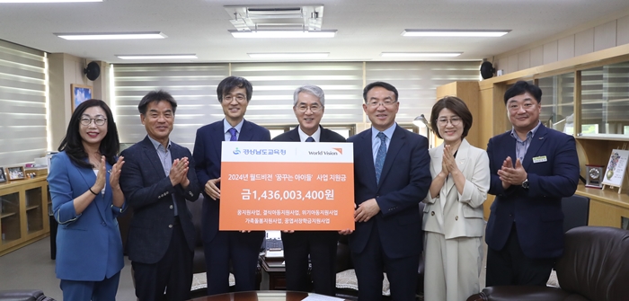 [½Ã»çÄÚ¸®¾ÆÀú³Î=Á¤Á¾¹Î ¼±ÀÓ±âÀÚ] °æ³²µµ±³À°Ã»(±³À°°¨ ¹ÚÁ¾ÈÆ)Àº 27ÀÏ º»Ã» ±³À°°¨ Áý¹«½Ç¿¡¼ ±³À°º¹Áö¾ÈÀü¸Á ‘²Þ²Ù´Â ¾ÆÀÌ, Èñ¸ÁÁö¿ø ³×Æ®¿öÅ©’ »ç¾÷ÀÇ Çϳª·Î ¿ùµåºñÀü °æ³²¿ï»êÁö¿ªº»ºÎ¿Í ‘²Þ²Ù´Â ¾ÆÀÌµé’ Áö¿ø±Ý Àü´Þ½ÄÀ» ¿¾ú´Ù.