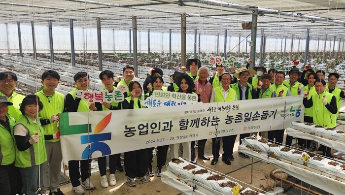 ¶ÇÇÑ ´çÀÏ ¿ÀÈÄ, ³óÇùÆÄÆ®³Ê½º ÀÓÁ÷¿ø 25¸í°ú ÇÔ²² °ÅÁ¦¸é ¼ÒÀç µþ±â ³ó°¡¸¦ ¹æ¹®ÇÏ¿© ºñ´ÒÇϿ콺 ³» ö°Å ÀÛ¾÷ µîÀ» µµ¿ì¸ç ³ó¹ÎµéÀÇ ÁøÁ¤ÇÑ‘ÆÄÆ®³Ê’°¡ µÇ¾î ³ó»çö Àϼյ½±â ÇöÀå¿¡¼ ±¸½½¶¡À» Èê·È´Ù.