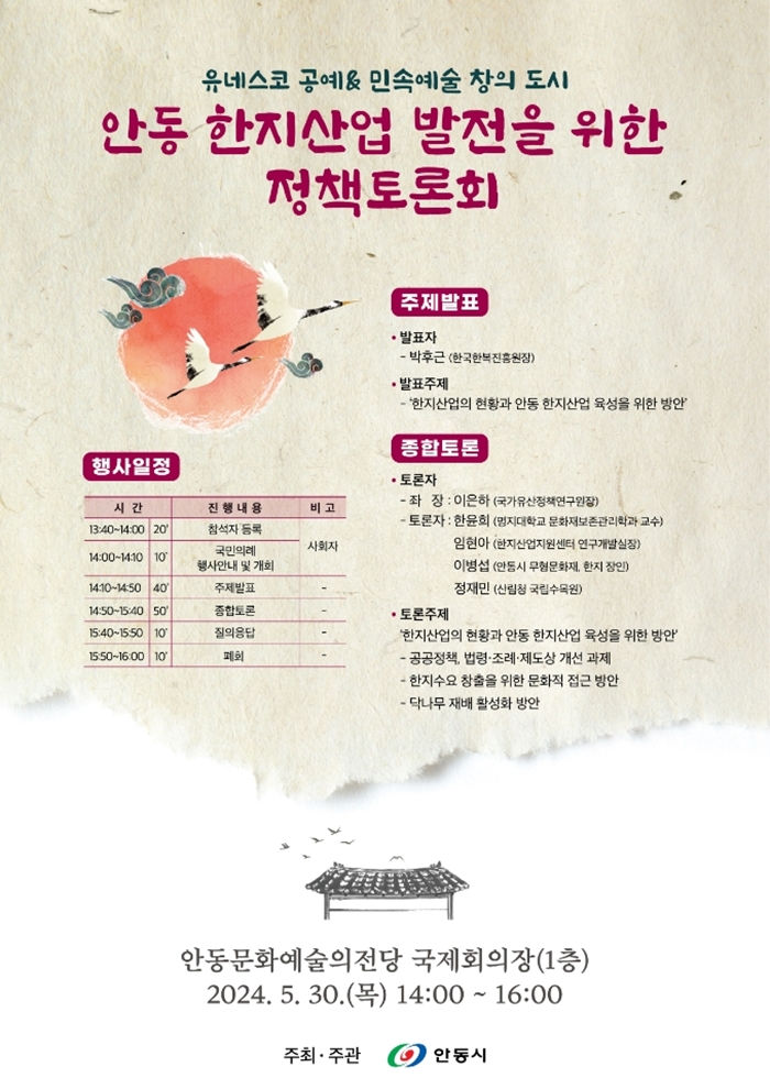 [½Ã»çÄÚ¸®¾ÆÀú³Î=±è¿¬ÇÐ ±âÀÚ] ¾Èµ¿½Ã´Â ¿À´Â 30ÀÏ ¿ÀÈÄ 2½ÃºÎÅÍ ¾Èµ¿¹®È¿¹¼úÀÇÀü´ç ±¹Á¦È¸ÀÇÀå¿¡¼ '¾Èµ¿ ÇÑÁö»ê¾÷ ¹ßÀüÀ» À§ÇÑ Á¤Ã¥Åä·Ðȸ'¸¦ °³ÃÖÇÑ´Ù.