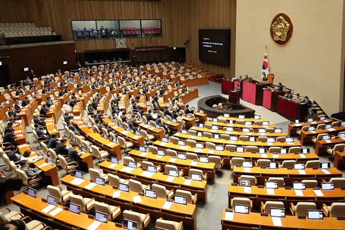 | 28ÀÏ ¿ÀÈÄ ±¹È¸¿¡¼ ¿¸° º»È¸ÀÇ¿¡¼ Àü¼¼»ç±âƯº°¹ý °³Á¤¾ÈÀÌ ¿©´ç ÀÇ¿øµéÀÌ ºÒÂüÇÑ °¡¿îµ¥ ¾ß´ç ´Üµ¶À¸·Î 󸮵ǰí ÀÖ´Ù. /¿¬ÇÕ´º½º |