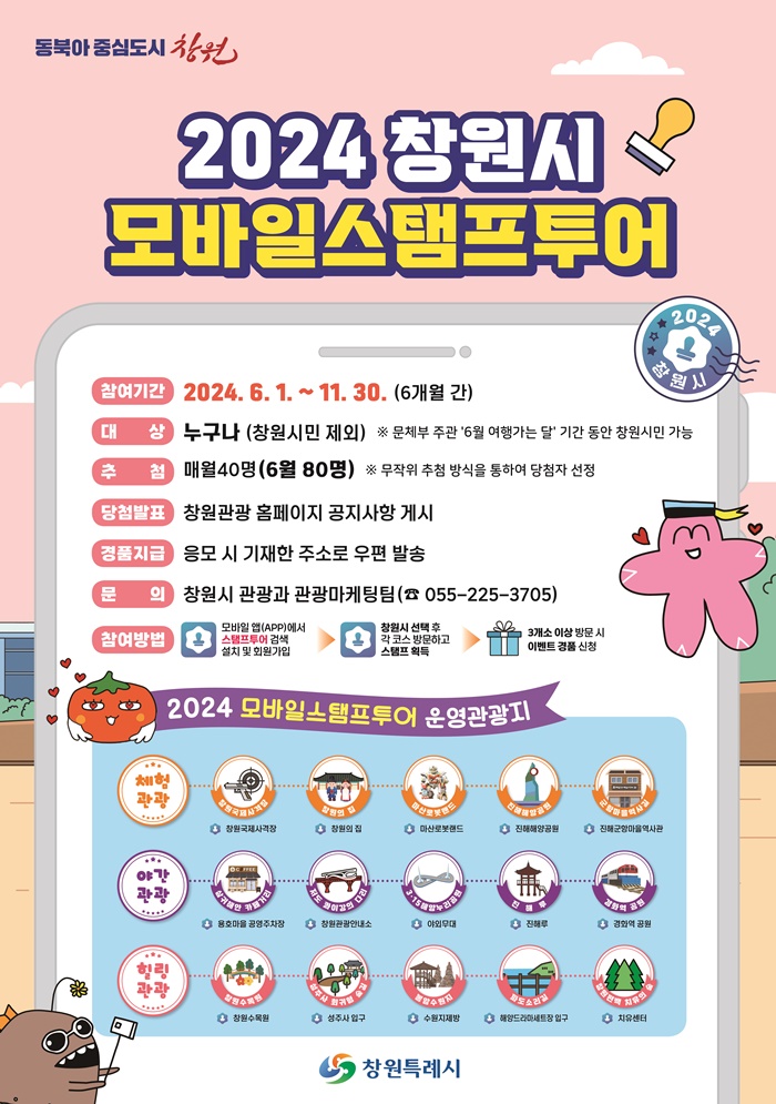 À̹ø ½ºÅÆÇÁ Åõ¾î´Â â¿øÀÇ ´ëÇ¥ ÃàÁ¦ÀÎ ÁøÇØ ±ºÇ×Á¦ ÀÌÈÄ, »ç°èÀý ´Ùä·Î¿î â¿øÀÇ ¸Å·ÂÀ» ¾Ë¸®±â À§ÇØ ÃßÁøµÇ¸ç, üÇ跾߰£·Èú¸µÀ» ÁÖÁ¦·Î ¼±Á¤ÇÑ °ü±¤Áö 15°³¼Ò Áß 3°÷ ÀÌ»ó ¹æ¹®ÇÑ °ü±¤°´¿¡°Ô Ãß÷À» ÅëÇØ ±â³äǰÀ» Á¦°øÇÏ´Â À̺¥Æ®´Ù.