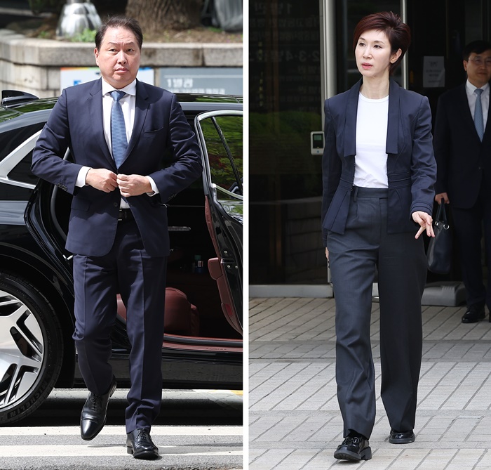 | ÃÖÅ¿ø SK ȸÀå°ú ³ë¼Ò¿µ ¾ÆÆ®¼¾ÅÍ ³ªºñ °üÀåÀÌ Áö³ 4¿ù 16ÀÏ ¿ÀÈÄ ¼¿ï ¼Ãʱ¸ ¼¿ï°íµî¹ý¿ø¿¡¼ ¿¸° ÀÌÈ¥ ¼Ò¼Û Ç×¼Ò½É °øÆÇ¿¡ Ãâ¼®Çß´Ù. ¿ÞÂÊÀº ¹ýÁ¤ Ãâ¼®ÇÏ´Â ÃÖ È¸Àå, ¿À¸¥ÂÊÀº ÀçÆÇÀ» ¸¶Ä£ µÚ ¹ýÁ¤À» ³ª¼´Â ³ë °üÀå. /¿¬ÇÕ´º½º |
