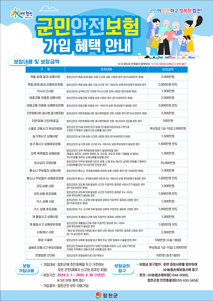 ±º¹Î¾ÈÀüº¸ÇèÀº ÇÕõ±º¿¡ ÁÖ¼Ò¸¦ µÐ ±º¹Î(µî·Ï ¿Ü±¹ÀÎ Æ÷ÇÔ)À» ´ë»óÀ¸·Î ºÒÀÇÀÇ »ç°í·Î ÀÎÇÑ »ç¸Á ¹× ÈÄÀ¯Àå¾Ö µî¿¡ µû¸¥ º¸Çè±ÝÀ» Áö±ÞÇÏ´Â Á¦µµ·Î, º°µµÀÇ °¡ÀÔ ÀýÂ÷¿Í ºñ¿ë ºÎ´ã¾øÀÌ ÇýÅÃÀ» Á¦°øÇÑ´Ù.