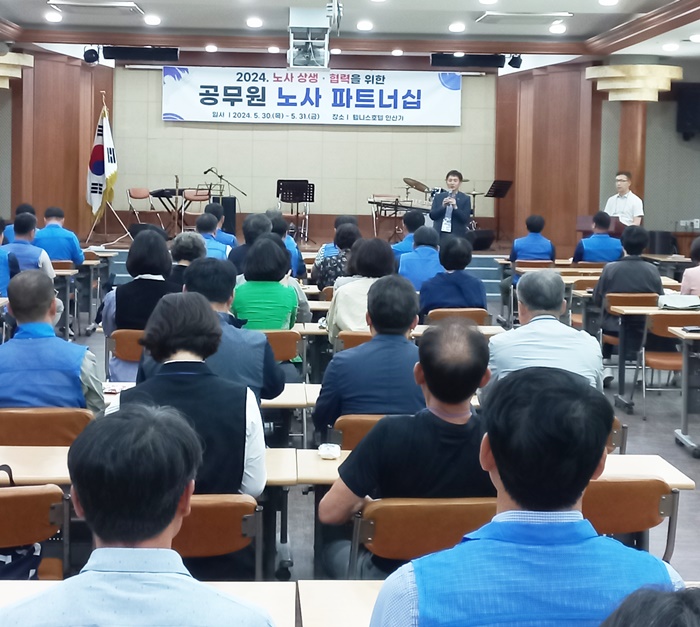 [½Ã»çÄÚ¸®¾ÆÀú³Î=Á¤Á¾¹Î ¼±ÀÓ±âÀÚ] °æ³²µµ±³À°Ã»(±³À°°¨ ¹ÚÁ¾ÈÆ)Àº 30ÀϺÎÅÍ 31ÀϱîÁö ÇԾ籺 Àλ갡 À£´Ï½º È£ÅÚ¿¡¼ ±³À°Áö¿øÃ» ÇàÁ¤Áö¿ø°úÀå, °æ³²±³À°³ëÁ¶ Á¶ÇÕ¿ø µî 70¿© ¸íÀÌ Âü¼®ÇÑ °¡¿îµ¥ ‘2024³â °ø¹«¿ø ³ë»ç µ¿¹Ý °ü°è(ÆÄÆ®³Ê½Ê)’ Çà»ç¸¦ ¿°í ÀÖ´Ù.