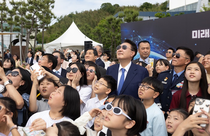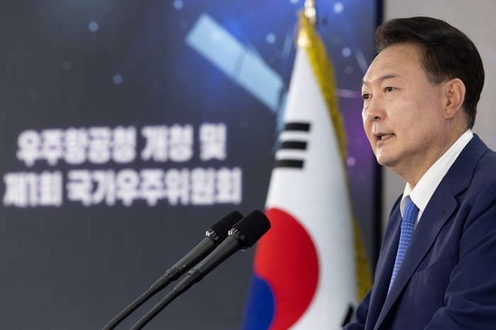 [½Ã»çÄÚ¸®¾ÆÀú³Î=¹ÚÀÏ¿ì ±âÀÚ] À±¼®¿ ´ëÅë·ÉÀº 30ÀÏ °æ³² »çõ ¿ìÁÖÇ×°øÃ» ÀÓ½Ãû»ç¿¡¼ ¿¸° °³Ã» ±â³ä½Ä¿¡¼ "2032³â ´Þ¿¡ ¿ì¸® Ž»ç¼±À» Âø·ú½Ã۰í, 2045³â ȼº¿¡ űر⸦ ²È±â À§ÇÑ '½ºÆäÀ̽º ±¤°³Åä ÇÁ·ÎÁ§Æ®'¸¦ ÃßÁøÇϰڴÙ"°í ¹àÇû´Ù.