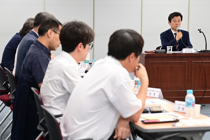 À̳¯ Áß°£º¸°íȸ´Â Á¶±ÔÀÏ ÁøÁÖ½ÃÀå, ÀÚ¹®À§¿ø, (Àç)°æ³²Å×Å©³ëÆÄÅ© °ü°èÀÚ, ¿ë¿ª»ç ¹× °ü·Ã ºÎ¼ °ø¹«¿øÀÌ Âü¼®ÇÑ °¡¿îµ¥ ¿ë¿ª ÃßÁø³»¿ë Áß°£º¸°í, ÀÚ¹®À§¿ø ÁúÀÇÀÀ´ä, ¸¶¹«¸®¸»¾¸ ¼øÀ¸·Î ÁøÇàµÆ´Ù.