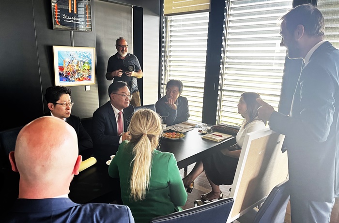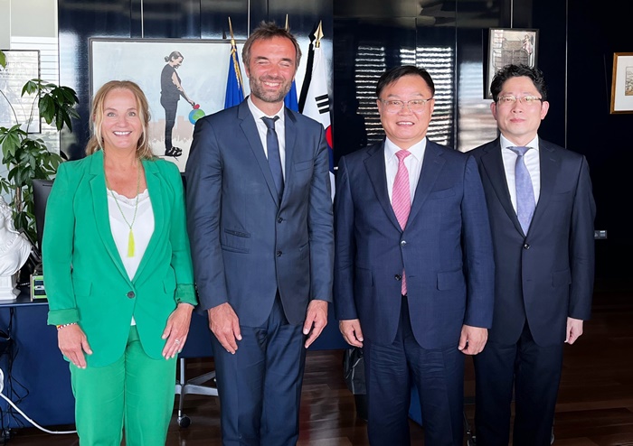 | È«³²Ç¥ â¿øÆ¯·Ê½ÃÀåÀÌ 30ÀÏ ÇÁ¶û½º ¸ùÆç¸®¿¡ ½ÃûÀ» ¹æ¹®, ¹ÌÄ«¿¤ µå¶óÆ÷½º ½ÃÀå°ú ȯ´ãÈÄ °ü°èÀÚµé°ú ±â³ä ÃÔ¿µÀ» Çϰí ÀÖ´Ù. ¿ÞÂʺÎÅÍ ¸ùÆç¸®¿¡ ±¹Á¦ºÎ½ÃÀå Ŭ·¹¾î ÇÏÆ®(Clare Hart), ½ÃÀå ¹ÌÄ«¿¤ µå¶óÆ÷½º(Michael Delafosse), È«³²Ç¥ â¿øÆ¯·Ê½ÃÀå, ¾çÈñâ ¹æ»ê¿øÀÚ·ÂÆ¯º¸. |