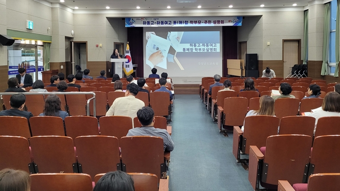 [½Ã»çÄÚ¸®¾ÆÀú³Î=Á¤Á¾¹Î ¼±ÀÓ±âÀÚ] °æ³²µµ±³À°Ã»(±³À°°¨ ¹ÚÁ¾ÈÆ)Àº Çϵ¿ Áö¿ª ÇзÉÀα¸ °¨¼Ò¿¡ ´ëºñÇÑ °ø¸³ Çϵ¿°íµîÇб³¿Í »ç¸³ Çϵ¿¿©ÀÚ°íµîÇб³ÀÇ ÅëÆóÇÕ ÃßÁø¿¡ ´ëÇØ Áö³´Þ 28Àϰú 30ÀÏ, 31ÀÏ 3Àϰ£ Çϵ¿À¾°ú Áø±³ Áö¿ª¿¡¼ Çкθð¿Í Áö¿ª ÁֹΠ¼³¸íȸ¸¦ ¿¾ú´Ù.