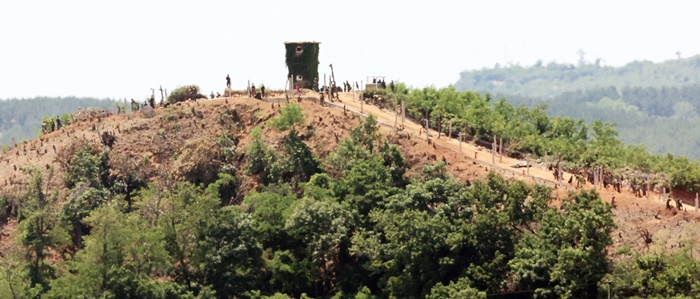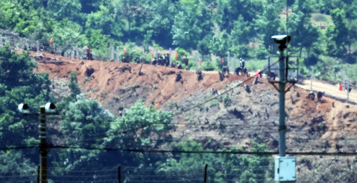 | 9·19 ³²ºÏ ±º»çÇÕÀÇ Àüü È¿·Â Á¤Áö¾ÈÀÌ ±¹¹«È¸ÀǸ¦ Åë°úÇÑ 4ÀÏ °æ±âµµ ÆÄÁÖ Á¢°æÁö¿ª¿¡¼ ¹Ù¶óº» ºÏÇÑÀÇ ÇÑ Ãʼҿ¡¼ ºÏÇÑ ±ºÀεéÀÌ ÁøÁö °ø»ç¸¦ Çϰí ÀÖ´Ù. /¿¬ÇÕ´º½º |