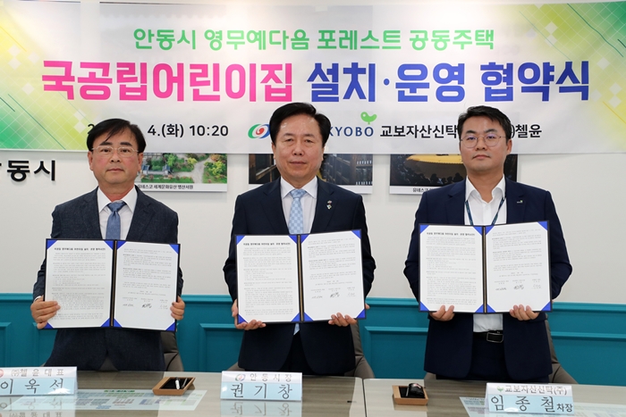 [½Ã»çÄÚ¸®¾ÆÀú³Î=±è¿¬ÇÐ ±âÀÚ] ¾Èµ¿½Ã´Â 4ÀÏ °øº¸À°°È¸¦ À§ÇÑ ±¹°ø¸³¾î¸°ÀÌÁý È®Ãæ»ç¾÷À¸·Î 9¿ù ÀÔÁÖ¿¹Á¤ÀÎ ¿µ¹«¿¹´ÙÀ½ Æ÷·¹½ºÆ® °øµ¿ÁÖÅà ´ÜÁö ³» ±¹°ø¸³¾î¸°ÀÌÁý °³¿øÀ» À§ÇØ ½ÃÇà»ç(±³º¸ÀÚ»ê½ÅŹ(ÁÖ) Á¶ÇõÁ¾ ´ëÇ¥) ¹× À§Å¹»ç((ÁÖ)ÿÀ± ÀÌ¿í¼± ´ëÇ¥)¿Í ¾÷¹«Çù¾àÀ» ü°áÇß´Ù.