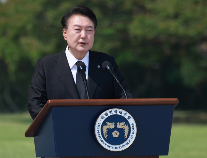 [½Ã»çÄÚ¸®¾ÆÀú³Î=Á¤Á¾¹Î ¼±ÀÓ±âÀÚ] À±¼®¿ ´ëÅë·ÉÀº 6ÀÏ ±¹¸³¼¿ïÇöÃæ¿ø¿¡¼ '´ëÇѹα¹À» ÁöÄѳ½ ´ç½ÅÀÇ Èñ»ýÀ» ±â¾ïÇÕ´Ï´Ù'¸¦ ÁÖÁ¦·Î ¿¸° Á¦69ȸ ÇöÃæÀÏ Ãß³ä½Ä¿¡¼ "Á¤ºÎ´Â ºÏÇÑÀÇ À§ÇùÀ» °áÄÚ Á½ÃÇÏÁö ¾ÊÀ» °Í"À̶ó¸ç "¼ÇØ»ó Æ÷»ç°Ý°ú ¹Ì»çÀÏ ¹ß»ç¿¡ À̾î ÃÖ±Ù¿¡´Â Á¤»óÀûÀÎ ³ª¶ó¶ó¸é ºÎ²ô·¯¿öÇÒ ¼ö¹Û¿¡ ¾ø´Â ºñ¿ÇÑ ¹æ½ÄÀÇ µµ¹ß±îÁö °¨ÇàÇß´Ù"°í ¹àÇû´Ù.
