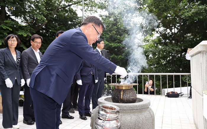[½Ã»çÄÚ¸®¾ÆÀú³Î=Á¤Á¾¹Î ¼±ÀÓ±âÀÚ] â¿øÆ¯·Ê½Ã(½ÃÀå È«³²Ç¥)´Â 6ÀÏ ¿ÀÀü 10½Ã ¸¶»êÃæÈ¥Å¾¿¡¼ ¼ø±¹¼±¿°ú È£±¹¿µ·ÉÀÇ ¼þ°íÇÑ Èñ»ýÁ¤½ÅÀ» ±â¸®´Â Á¦69ȸ ÇöÃæÀÏ Ãß³ä½ÄÀ» °ÅÇàÇß´Ù.