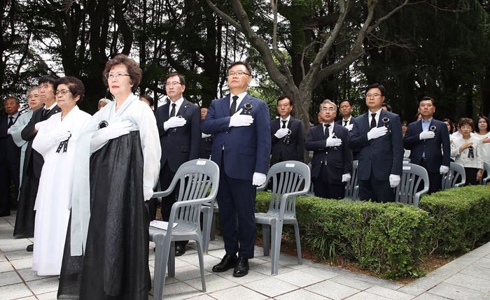 ÇöÃæÀÏ Ãß³ä½ÄÀº ‘ÀÏ»ó ¼Ó »ì¾ÆÀÖ´Â º¸ÈÆ, ¸ðµÎÀÇ º¸ÈÆ’À̶ó´Â ½½·Î°Ç ¾Æ·¡ ¿ÀÀü 10½Ã Àü±¹ µ¿½Ã¿¡ ¿ï¸®´Â »çÀÌ·»¿¡ ¸ÂÃç 1ºÐ°£ ±¹°¡À¯°øÀÚÀÇ Èñ»ý°ú °øÇåÀ» ±â¾ïÇÏ°í °¨»çÇÏ´Â ¹¬³ä¿¡ À̾î È£±¹¿µ·É¿¡ ´ëÇÑ ÇåÈ¿Í ºÐÇâ, Ãß³ä»ç, Çå½Ã ³¶µ¶, ÇöÃæÀÏ ³ë·¡ Á¦Ã¢ ¼øÀ¸·Î ÁøÇàµÆ´Ù.