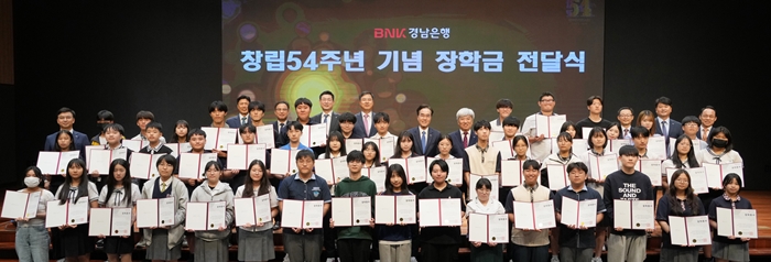 [½Ã»çÄÚ¸®¾ÆÀú³Î=±èÈñ¿µ ±âÀÚ] BNK°æ³²ÀºÇàÀº Áö³ 5ÀÏ ¿ÀÈÄ BNK°æ³²ÀºÇà º»Á¡ ´ë°´ç¿¡¼ ‘⸳ 54Áֳ⠱â³ä ÀåÇÐ±Ý Àü´Þ½Ä’À» °³ÃÖÇß´Ù.