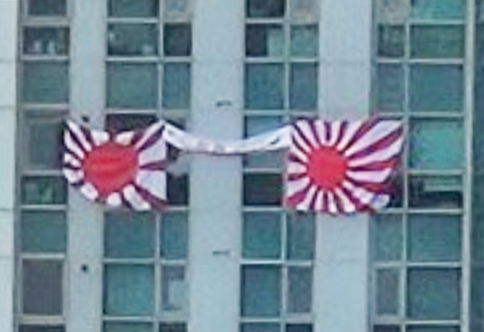 [½Ã»çÄÚ¸®¾ÆÀú³Î=±èÈñ¿µ ±âÀÚ] ºÎ»êÀÇ ÇÑ ¾ÆÆÄÆ®¿¡ ÀϺ» ±º±¹ÁÖÀǸ¦ »ó¡ÇÏ´Â ¿íÀϱⰡ ³» °É·Á ¿Â¶óÀÎ »ó¿¡¼ Å« ³í¶õÀÌ µÇ°í ÀÖ´Ù.
