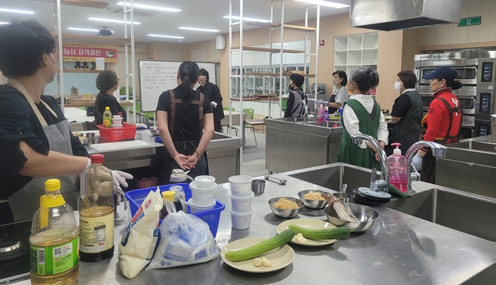 [½Ã»çÄÚ¸®¾ÆÀú³Î=±è¿¬ÇÐ ±âÀÚ] ¿µ¾ç±º(±º¼ö ¿ÀµµÃ¢)Àº Áö³ 1¿ù 31ÀϺÎÅÍ ½ÃÀÛÇÑ Áß½ÄÁ¶¸®±â´É»ç ÀÚ°ÝÁõ ¹Ý ÀÌ·Ð ±³À°À» ¸¶Ä¡°í, 6¿ùºÎÅÍ ³óÃÌ¿©¼º ±³À°»ý 9¸íÀ» ´ë»óÀ¸·Î ³ó¾÷±â¼ú¼¾ÅÍ »ýȰ°úÇнǽÀÀå¿¡¼ ½Ç±â±³À°À» ÁøÇàÇÑ´Ù.