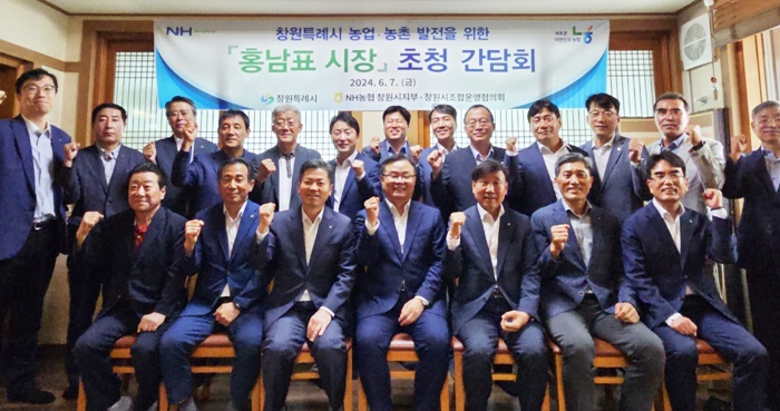 | È«³²Ç¥ â¿ø½ÃÀåÀº 7ÀÏ Áö¿ª³óÇù°úÀÇ À¯±âÀûÀÎ Çù¾÷ü°è¸¦ °ÈÇϱâ À§ÇÑ °ü³» ½Ä´ç¿¡¼ °£´ãȸ¸¦ °³ÃÖÇß´Ù.(»çÁø ù° ÁÙ ¿ÞÂʺÎÅÍ ¼Ã¢¿ø³óÇù ±èÁø¼® Á¶ÇÕÀå, ÁøÇسóÇù ¹è»ó¿À Á¶ÇÕÀå, NH³óÇù Á¶±Ù¼ö °æ³²º»ºÎÀå, È«³²Ç¥ â¿ø½ÃÀå, µ¿Ã¢¿ø³óÇù Ȳ¼ºº¸ Á¶ÇÕÀå, µ¿À¾³óÇù ÀÌ»óµæ Á¶ÇÕÀå, NH³óÇù ±è°©¹® â¿ø½ÃÁöºÎÀå) |