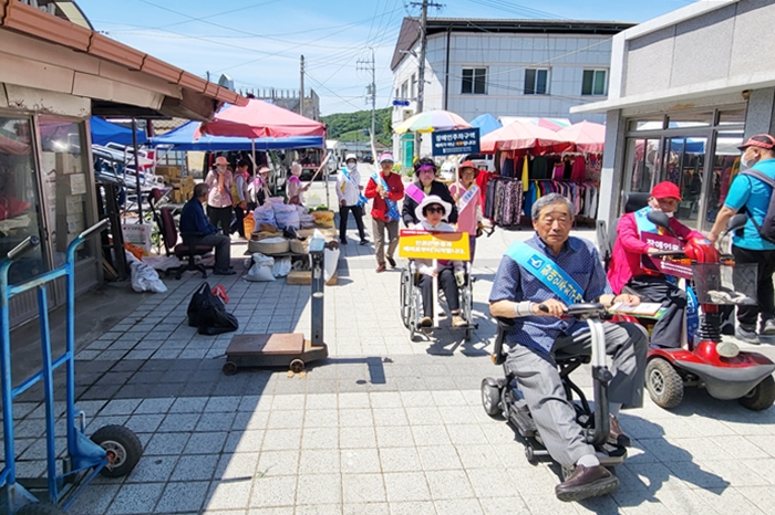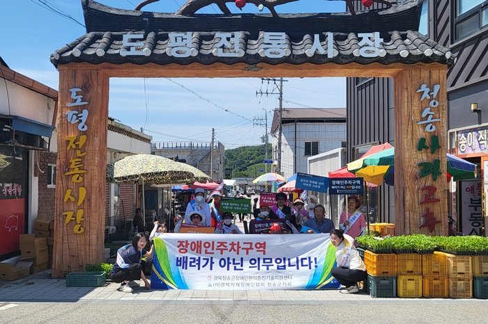 [½Ã»çÄÚ¸®¾ÆÀú³Î=±è¿¬ÇÐ ±âÀÚ] (»ç)°æºÏÁöüÀå¾ÖÀÎÇùȸ û¼Û±ºÁöȸ¿¡¼ Áö³ 5ÀÏ Çöµ¿¸é µµÆò½ÃÀå¿¡¼ ‘Àå¾ÖÀÎ ±ÇÀÍÇâ»óÀ» À§ÇÑ È«º¸ Ä·ÆäÀÎ’À» ÁøÇàÇß´Ù.