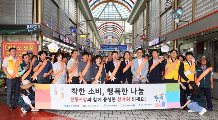 [½Ã»çÄÚ¸®¾ÆÀú³Î=Á¤Á¾¹Î ¼±ÀÓ±âÀÚ] Çѱ¹³²µ¿¹ßÀü(»çÀå °±âÀ±)Àº ¹ÎÁ· ´ë¸íÀýÀÎ Ãß¼®À» ¸Â¾Æ ÁøÁÖÁß¾Ó½ÃÀå¿¡¼ ¾î·Á¿î ÀÌ¿ôµé¿¡°Ô ¿ÂÁ¤À» ÀüÇϰí Áö¿ª°æÁ¦ Ȱ¼ºÈ¿¡ ±â¿©Çϱâ À§ÇØ À¯°ü±â°ü ÇÕµ¿ ÀüÅë½ÃÀå Ȱ¼ºÈ Ä·ÆäÀÎÀ» ÆîÃÆ´Ù°í ¹àÇû´Ù.