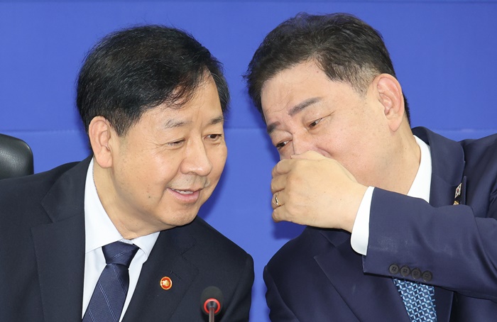 | 30ÀÏ ¼¿ï ¿©Àǵµ ±¹È¸ ÀÇ¿øÈ¸°ü¿¡¼ ¿¸° °æÁ¦Çü¹ú ¹Î»çÃ¥ÀÓ ÇÕ¸®ÈTF ´çÁ¤ÇùÀÇ¿¡¼ ´õºÒ¾î¹ÎÁÖ´ç ±èº´±â ¿ø³»´ëÇ¥¿Í ±¸À±Ã¶ ºÎÃѸ® °â ±âȹÀçÁ¤ºÎ Àå°üÀÌ ´ëÈÇϰí ÀÖ´Ù. /¿¬ÇÕ´º½º |