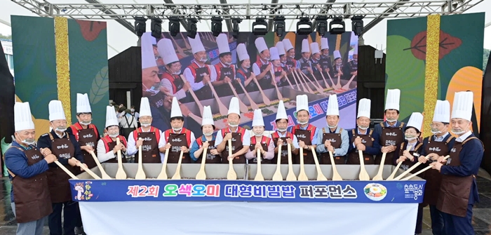 10¿ù 16ÀÏ °³¸·½Ä¿¡ ¾Õ¼ ºÀÈÀÇ ³ó»ê¹°ÀÌ ÃÑÃ⵿ÇÏ´Â ‘¿À»ö¿À¹Ì ´ëÇü ºñºö¹ä ÆÛÆ÷¸Õ½º’°¡ ¿¸°´Ù. 500ÀκÐÀÇ ºñºö¹äÀÌ ÇöÀå¿¡¼ ¹«·á ½Ã½ÄÀ¸·Î Á¦°øµÅ ÃàÁ¦ÀÇ ¹®À» Ȱ¦ ¿¬´Ù. °°Àº ³¯ ¿ÀÈÄ¿¡´Â Ç»Àü ±¹¾Ç°ú ÀüÅë ¹Î¿ä°¡ ¾î¿ì·¯Áø ‘dz·ùÇѸ¶´ç’ÀÌ ¼ºÀ̼º¹®ÈÁ¦ÀÇ ½ÃÀÛÀ» ¾Ë¸®¸ç Èï°Ü¿î ¹«´ë¸¦ ¼±º¸ÀδÙ.