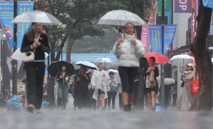| ºñ°¡ ³»¸®´Â ¼¿ï Áß±¸ ¸íµ¿°Å¸®¿¡¼ ½Ã¹Î ¹× ¿Ü±¹ÀÎ °ü±¤°´µéÀÌ ¿ì»êÀ» ¾´ ä °É¾î°¡°í ÀÖ´Ù. /¿¬ÇÕ´º½º ÀÚ·á»çÁø |