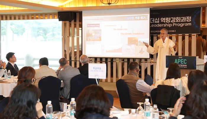 [½Ã»çÄÚ¸®¾ÆÀú³Î=Á¤Á¾¹Î ¼±ÀÓ±âÀÚ] ¹ÚÁ¾ÈÆ °æ³²±³À°°¨ÀÌ 14ÀÏ ´ë±¸ ÀÎÅͺҰí È£ÅÚ¿¡¼ ¿¸° 2025 APEC ½ºÄ𸮴õ½Ê ¿ª·®°È °úÁ¤¿¡¼ ‘±Û·Î¹ú ¹Ì·¡»çȸ, ½ºÄ𸮴õÀÇ ¿ªÇÒ°ú µµÀü’À» ÁÖÁ¦·Î ±âÁ¶ °¿¬À» ÁøÇàÇß´Ù.