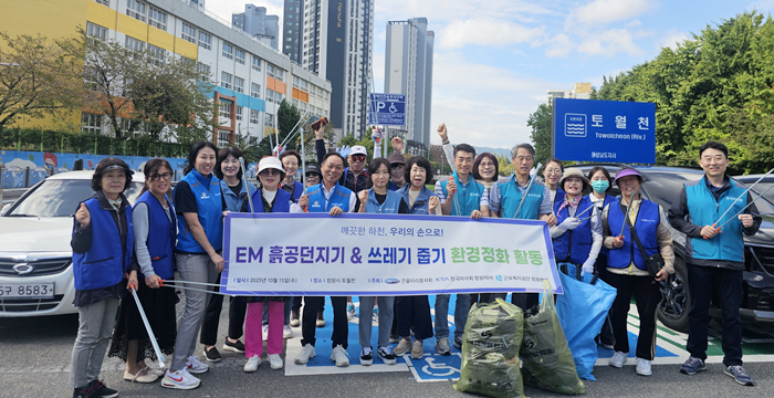 [½Ã»çÄÚ¸®¾ÆÀú³Î=ÀÌȯ¼ö ±âÀÚ] Å«¿ïŸ¸®ºÀ»çȸ(ȸÀå À̹®¼ø)´Â Áö³ 8¿ù24ÀÏ EMÀ» Ȱ¿ëÇÑ Èë°øÀ» ¸¸µé¾î 15ÀÏ ‘Åä¿ùõ »ì¸®±â’ Çà»ç¸¦ °¡Á³´Ù. MOU¸¦ ¸ÎÀº Çѱ¹¸¶»çȸ °æ³²Áö»ç, â¿øº´¿ø, Áö±¸½Ã¹Î¿¬ÇÕµî ±â°ü°ú ´Üü¿¡¼ 30¿© ¸íÀÌ Çà»ç¿¡ Âü¿©ÇÏ¿© ¾Æ¸§´Ù¿î â¿øÃµÀ» ¸¸µé±â À§ÇÑ ‘EMÈë°ø ´øÁö±â’¿Í ‘¾²·¹±âÁݱ⒠ȯ°æÁ¤È Ȱµ¿À» ÁøÇàÇß´Ù.
