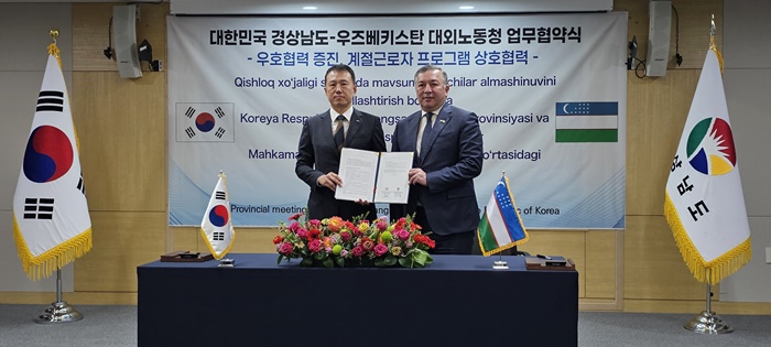 [½Ã»çÄÚ¸®¾ÆÀú³Î=Á¤Á¾¹Î ¼±ÀÓ±âÀÚ] ÇÕõ±º(±º¼ö ±èÀ±Ã¶)Àº 14ÀÏ °æ³²µµÃ» µµÁ¤È¸Àǽǿ¡¼ ¿ìÁŰ½ºÅº ´ë¿Ü³ëµ¿Ã»°ú ¿Ü±¹ÀÎ °èÀý±Ù·ÎÀÚ µµÀÔÀ» À§ÇÑ ¾÷¹«Çù¾à(MOU)À» ü°áÇß´Ù.