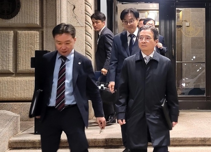 ±¸ ºÎÃѸ®ºÎÅÍ ±è ½ÇÀå, ±è Àå°ü, ¿© º»ºÎÀå±îÁö °¢·á±Þ Àλç 4¸íÀÌ Çù»ó ÁøÀüÀ» À§ÇØ ÇѲ¨¹ø¿¡ ¹Ì±¹À» ãÀº °ÍÀÌ´Ù.