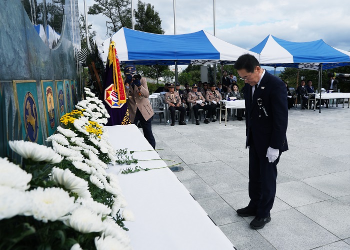 ¹Ú¼®¸¸ ÁöȸÀåÀº “61³â Àü ¿ì¸®´Â ³¸¼± À̱¹¶¥¿¡¼ ÀÚÀ¯¿Í Æòȸ¦ Áö۱â À§ÇØ Çå½ÅÇß´Ù”¸ç, “¿À´Ã ÀÌ ½Ã°£À» ÅëÇØ ÂüÀü¿ë»çµéÀÇ ¼þ°íÇÑ Á¤½ÅÀ» µÇ»õ±â°í, ¾ÕÀ¸·Îµµ À¯°øÀÚ¿Í À¯°¡Á·ÀÌ Á¤´çÇÑ ¿¹¿ì¸¦ ¹ÞÀ» ¼ö ÀÖµµ·Ï ÃÖ¼±À» ´ÙÇϰڴٔ°í ¸»Çß´Ù.