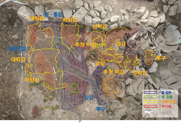 ¹«´ý ¾È¿¡¼´Â ½Å¶ó¿¡¼ °¡Àå ¿À·¡µÈ ±Ýµ¿°ü Á¶°¢ÀÌ È®ÀεƴÙ. ¶ÇÇÑ »ç¶÷°ú ¸»ÀÇ °©¿Ê°ú Åõ±¸°¡ ¿ÂÀüÇÑ »óÅ·ΠÃâÅ䵯´Ù. ƯÈ÷ ¸»ÀÇ °©¿Ê(ةˣ·¸¶°©)Àº ÂÊ»ùÁö±¸ C10È£ºÐ ÀÌÈÄ µÎ ¹øÂ° ¹ß°ß »ç·Ê´Ù.