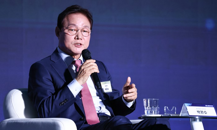 ¹Ú¿Ï¼ö °æ³²µµÁö»ç 20ÀÏ ºÎ»ê º¤½ºÄÚ¿¡¼ ¿¸° ‘2025 ³²ÇØ¾È ¹Ì·¡ºñÀü Æ÷·³’¿¡¼ ¹ß¾ðÇϰí ÀÖ´Ù. |