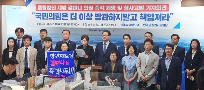 ¹ÎÁÖ´ç â¿ø½ÃÀÇ¿ø´Ü µîÀÌ Áö³ 13ÀÏ Ã¢¿ø½Ãû ÇÁ·¹½º¼¾ÅÍ¿¡¼ ±è¹Ì³ª ÀÇ¿ø Á¦¸í ¹× ¸í¿¹ÈÑ¼Õ ÇøÀÇ·Î °æÂû¿¡ °í¹ßÇÏ´Â ±âÀÚȸ°ßÀ» Çϰí ÀÖ´Ù. |