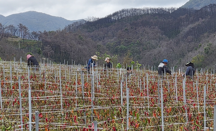 [½Ã»çÄÚ¸®¾ÆÀú³Î=±èÈñ¿µ ±âÀÚ] ¿µ¾ç±º ¼®º¸¸é(¸éÀå ±è¹Ì°æ)Àº °íÃß ¼öÈ®À» ¾ÕµÎ°í °©ÀÛ½º·¯¿î ºÎ»ó°ú Áúº´À¸·Î ¿µ³óÀÛ¾÷¿¡ ¾î·Á¿òÀ» °Þ°í ÀÖ´Â °ü³» ³ó°¡¸¦ ã¾Æ 21ÀÏ ³óÃÌ Àϼյ½±â¿¡ ³ª¼¹´Ù.
