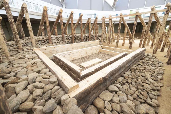 ¿¬±¸¼Ò °ü°èÀÚ´Â "¸ñÁ¶ ±¸Á¶¹°À» ¼¼¿î µÚ ¹«´ý ÁÖÀΰøÀÇ ½Ã½Å°ú ºÎÀåǰÀ» ¾ÈÄ¡ÇÑ ÀÌÁßÀÇ µ¡³Î ÀϺθ¦ ¸¸µé°í, ÁÖº¯À¸·Î µ¹À» ½×´Â °úÁ¤À» ÁøÇà Áß"À̶ó°í ¼³¸íÇß´Ù.