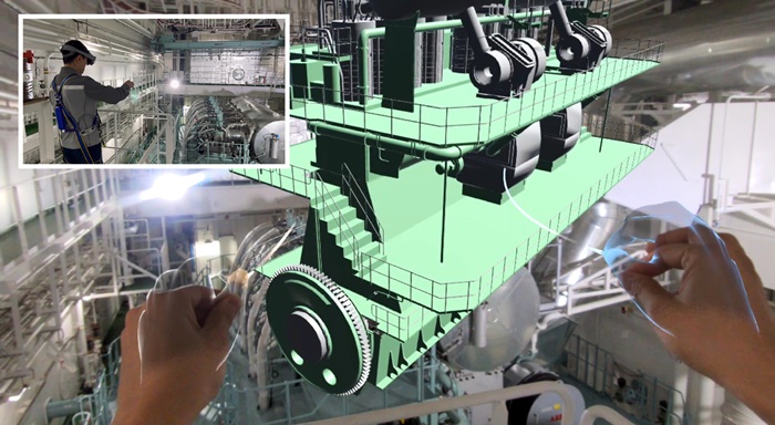 ÀÌ ³¯ °ø°³µÈ ¿µ»ó¿¡¼´Â '°¶·°½Ã XR'À» ÀåÂøÇÑ ÀÛ¾÷ÀÚ°¡ 3D·Î ±¸ÇöµÈ LNG ¿î¹Ý¼±ÀÇ ¿£ÁøÀ» ÆÐ½º½º·ç(Passthrough), ÇÚµå Æ®·¡Å·(Hand Tracking) ±â¼úÀ» Ȱ¿ëÇØ °¡»ó°ø°£¿¡¼ °Ë»çÇÏ´Â ¸ð½ÀÀÌ ½Ã¿¬µÆ´Ù.