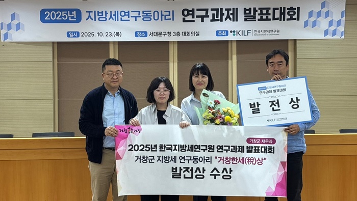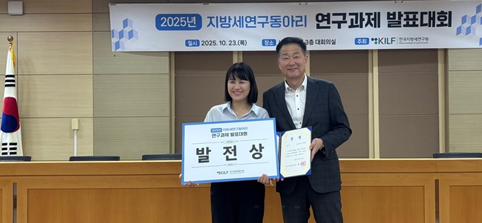 [½Ã»çÄÚ¸®¾ÆÀú³Î=Á¤Á¾¹Î ¼±ÀÓ±âÀÚ] °Åⱺ Áö¹æ¼¼ ¿¬±¸µ¿¾Æ¸® ‘°ÅâÇѼ¼(áª)»ó’ÀÌ Áö³ 23ÀÏ Çѱ¹Áö¹æ¼¼¿¬±¸¿ø¿¡¼ ÁÖÃÖÇÑ ‘2025³â Áö¹æ¼¼ ¿¬±¸µ¿¾Æ¸® ¿¬±¸ °ø¸ð ¹ßÇ¥´ëȸ’¿¡¼ ¹ßÀü»óÀ» ¼ö»óÇϸç, Àü±¹ÀûÀÎ ¼º°ú¸¦ °Åµ×´Ù.