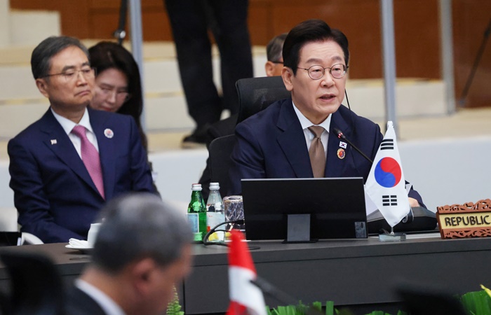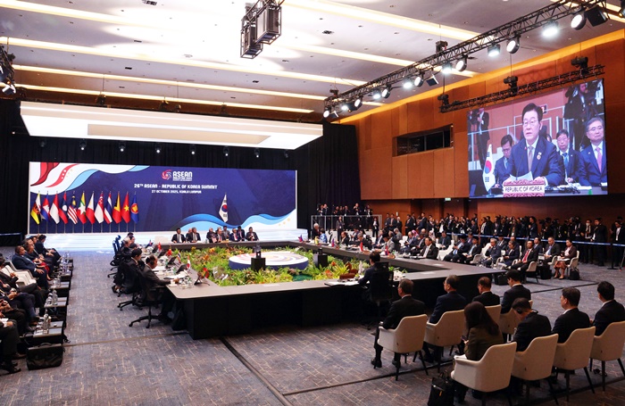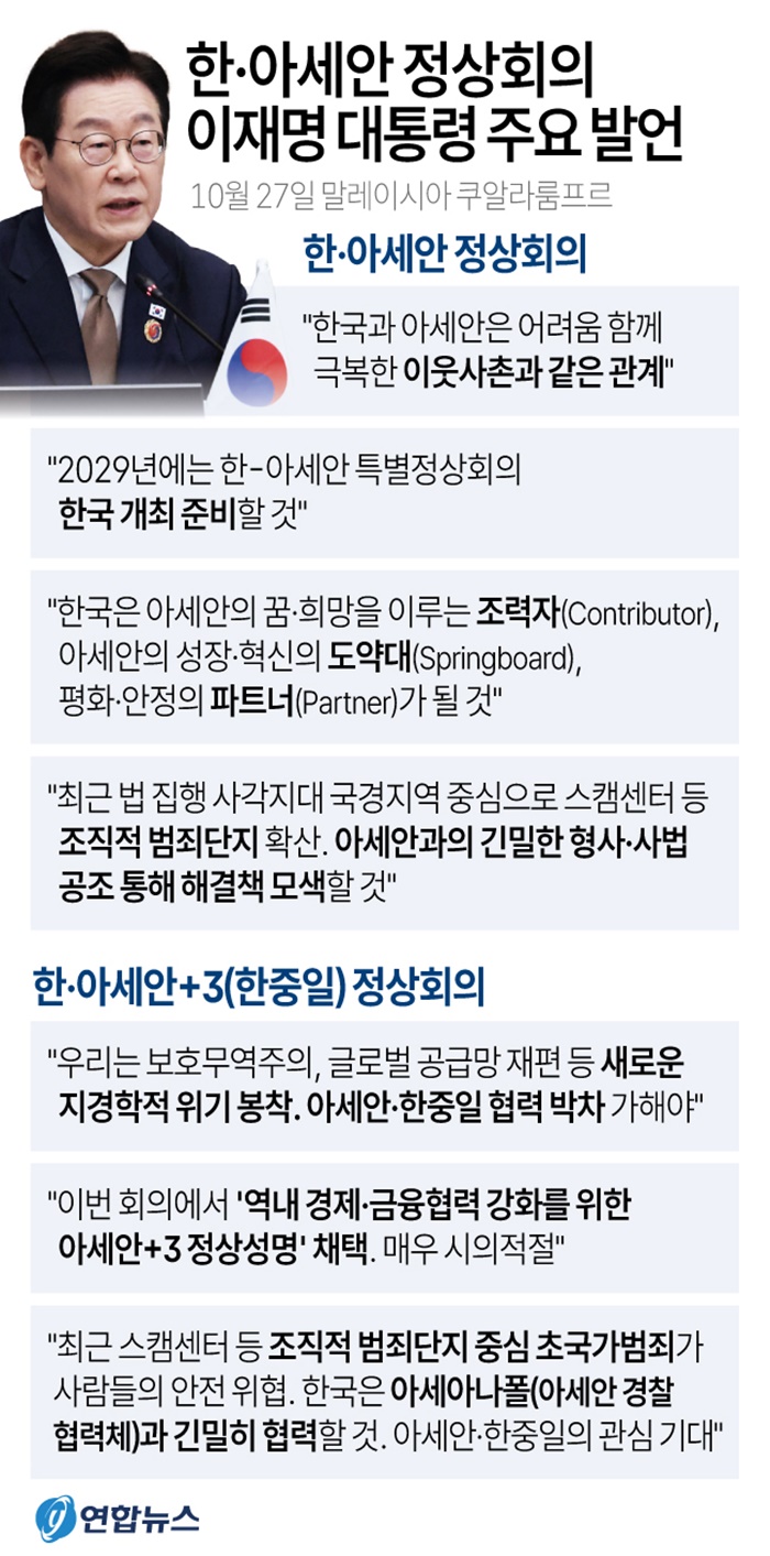 | ÀÌÀç¸í ´ëÅë·ÉÀÌ 27ÀÏ ¸»·¹ÀÌ½Ã¾Æ Äí¾Ë¶ó·ëǪ¸£ ÄÁº¥¼Ç¼¾ÅÍ¿¡¼ ¿¸° ÇÑ-¾Æ¼¼¾È Á¤»óȸÀÇ¿¡¼ ¹ß¾ðÇϰí ÀÖ´Ù. /¿¬ÇÕ´º½º |