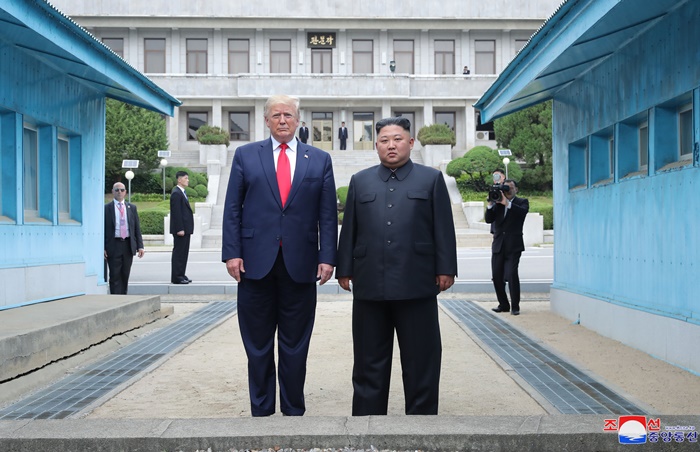 | µµ³Îµå Æ®·³ÇÁ ¹Ì±¹ ´ëÅë·É°ú ±èÁ¤Àº ºÏÇÑ ±¹¹«À§¿øÀåÀÌ 2019³â ÆÇ¹®Á¡ ±º»çºÐ°è¼± ¾Õ¿¡¼ Æ÷Á ÃëÇϰí ÀÖ´Ù. /¿¬ÇÕ´º½º ÀÚ·á»çÁø |