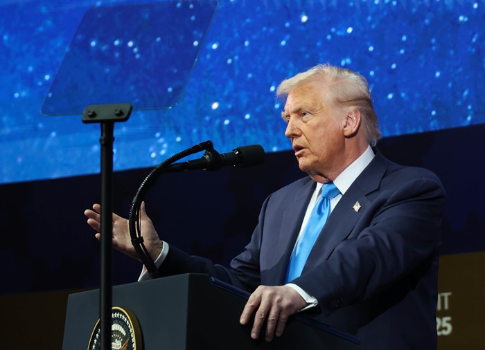 | µµ³Îµå Æ®·³ÇÁ ¹Ì±¹ ´ëÅë·ÉÀÌ 29ÀÏ °æÁÖ¿¹¼úÀÇÀü´ç¿¡¼ ¿¸° 2025 ¾Æ½Ã¾ÆÅÂÆò¾ç°æÁ¦Çù·Âü(APEC) Á¤»óȸÀÇ ÃÖ°í°æ¿µÀÚ(CEO) ¼¹Ô¿¡ Âü¼®ÇØ ¿¬¼³Çϰí ÀÖ´Ù. /´ëÇÑ»ó°øÈ¸ÀÇ¼Ò Á¦°ø |