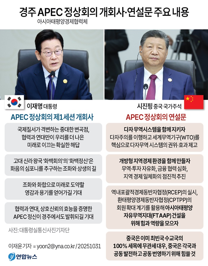 | ÀÌÀç¸í ´ëÅë·ÉÀÌ 31ÀÏ °æÁÖȹéÄÁº¥¼Ç¼¾ÅÍ(HICO)¿¡¼ ¿¸° 2025 ¾Æ½Ã¾ÆÅÂÆò¾ç°æÁ¦Çù·Âü(APEC) Á¤»óȸÀÇ Á¦1¼¼¼ÇÀ» ÁÖÀçÇϰí ÀÖ´Ù. /¿¬ÇÕ´º½º |