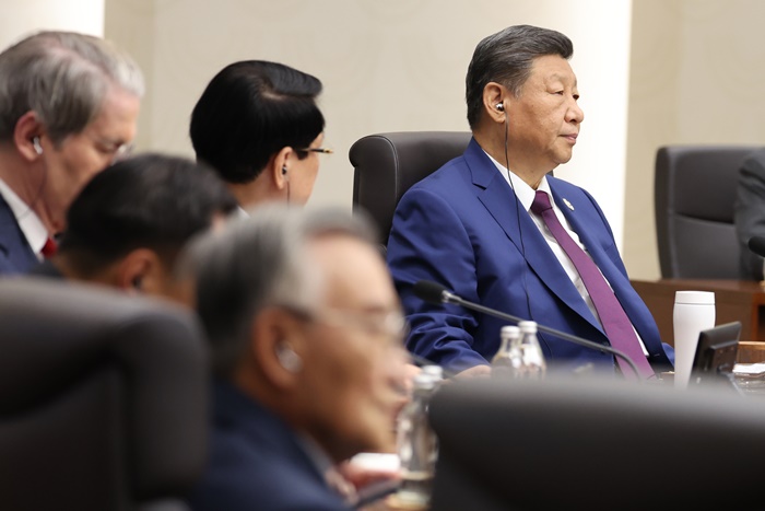 | ½ÃÁøÇÎ Áß±¹ ±¹°¡ÁÖ¼®ÀÌ 1ÀÏ °æÁÖȹéÄÁº¥¼Ç¼¾ÅÍ(HICO)¿¡¼ ¿¸° 2025 ¾Æ½Ã¾ÆÅÂÆò¾ç°æÁ¦Çù·Âü(APEC) Á¤»óȸÀÇ Á¦2¼¼¼Ç¿¡ Âü¼®ÇØ ÀÌÀç¸í ´ëÅë·ÉÀÇ °³È¸»ç¸¦ µè°í ÀÖ´Ù. /¿¬ÇÕ´º½º |