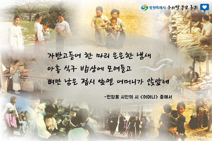 ¼±Á¤µÈ ±Û±Í´Â “Àڹݰíµî¾î ÇÑ ¸¶¸® ÀºÀºÇÑ ³¿»õ/ ¾ÆÈ© ½Ä±¸ ¹ä»ó¿¡ ¸ð¿©µé°í/ »À¸¸ ³²Àº Á¢½Ã ¾Õ¿£ ¾î¸Ó´Ï°¡ ¾É¾Ò³×”ÀÌ´Ù.