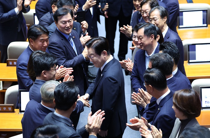 | ÀÌÀç¸í ´ëÅë·ÉÀÌ 4ÀÏ 2026³âµµ Á¤ºÎ ¿¹»ê¾È ½ÃÁ¤¿¬¼³À» À§ÇØ ±¹È¸º»È¸ÀÇÀå¿¡ ÀÔÀåÇÏ¸ç ´õºÒ¾î¹ÎÁÖ´ç ÀÇ¿øµé°ú ÀλçÇϰí ÀÖ´Ù |