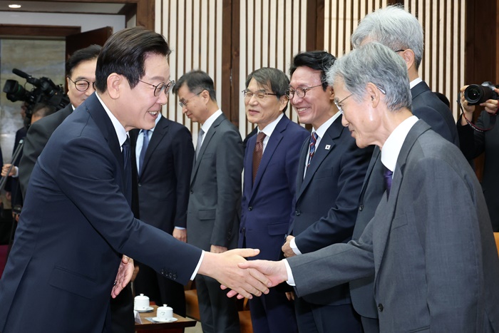 [½Ã»çÄÚ¸®¾ÆÀú³Î=Á¤Á¾¹Î ¼±ÀÓ±âÀÚ] ÀÌÀç¸í ´ëÅë·ÉÀº 4ÀÏ ³»³âµµ ¿¹»ê¾È¿¡ ´ëÇÑ ±¹È¸ ½ÃÁ¤¿¬¼³¿¡ ¾Õ¼ ¿ì¿ø½Ä ±¹È¸ÀÇÀåÀ» ºñ·ÔÇÑ 5ºÎ ¿äÀÎ, Á¤´ç ÁÖ¿ä ÀÎ»ç µî°ú ȯ´ãÇÏ¸ç ±¹È¸ÀÇ ÃÊ´çÀû Çù·ÂÀ» ¿äûÇß´Ù.