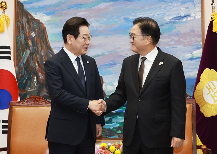 | ÀÌÀç¸í ´ëÅë·ÉÀÌ 4ÀÏ ±¹È¸¿¡¼ ³»³âµµ Á¤ºÎ ¿¹»ê¾È ½ÃÁ¤¿¬¼³¿¡ ¾Õ¼ ¿ì¿ø½Ä ±¹È¸ÀÇÀåÀ» ¸¸³ª ¾Ç¼öÇϰí ÀÖ´Ù. /¿¬ÇÕ´º½º |
