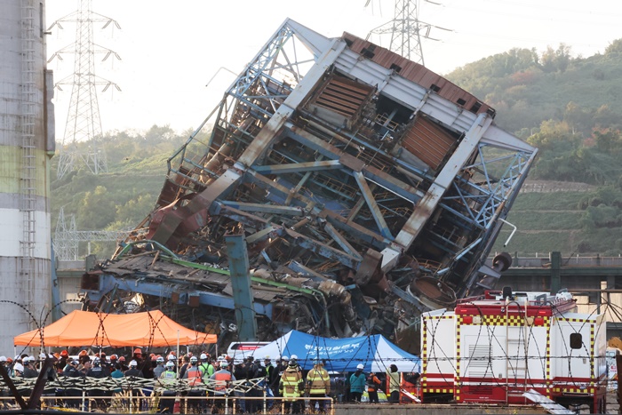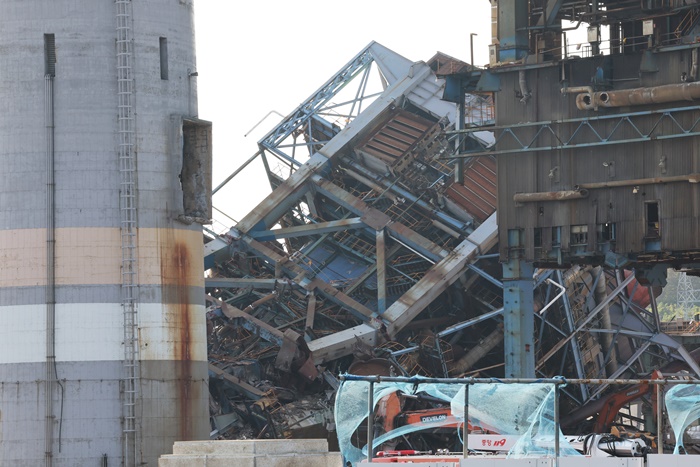 | 6ÀÏ ¿ÀÈÄ 2½Ã 2ºÐ²² ¿ï»ê ³²±¸ ¿ëÀᵿ Çѱ¹µ¿¼¹ßÀü ¿ï»ê¹ßÀüº»ºÎ ¿ï»êȷ¹ßÀü¼Ò¿¡¼ 60m ³ôÀÌ º¸ÀÏ·¯ Ÿ¿ö°¡ ¹«³ÊÁ® 2¸íÀÌ ±¸Á¶µÇ°í 7¸íÀÌ ¸Å¸ôµÈ °ÍÀ¸·Î ÃßÁ¤µÈ´Ù. »çÁøÀº »ç°í ÇöÀå /¿¬ÇÕ´º½º |