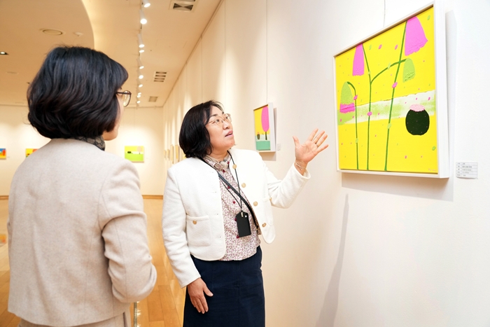 »çȸ°øÇåÈ«º¸ºÎ ÃÖ´ë½Ä ºÎÀåÀº “¿©·¯°¡Áö »ö±òÀÌ Àß ¾î¿ì·¯Áø ³ëÁ¤È ÀÛ°¡ÀÇ ÀÛǰÀ» º¸°í ÀÖÀ¸¸é ¸¶À½ÀÇ Æò¿Â°ú µû¶æÇÔÀ» ´À³¥ ¼ö ÀÖ´Ù. ÀÛǰÀ» °¨»óÇÒ ¶§ ¾Õ¿¡¼ º¸´Â °Íµµ ÁÁÁö¸¸ ¿·¿¡¼ º¸¸é ÀÔü°¨ÀÌ ´õ¿í µµµå¶óÁö°Ô º¸ÀÌ´Â °ÍÀÌ ÀλóÀûÀÌ´Ù”°í ¸»Çß´Ù.